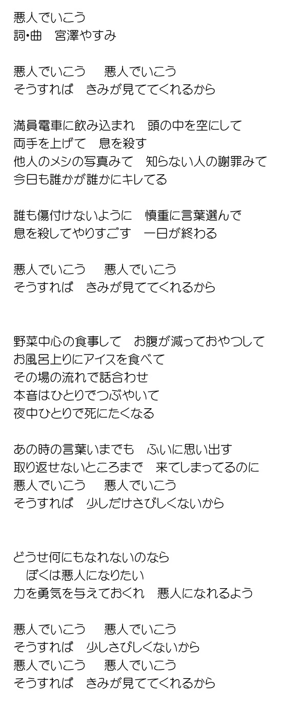 【悪人でいこう】歌詞