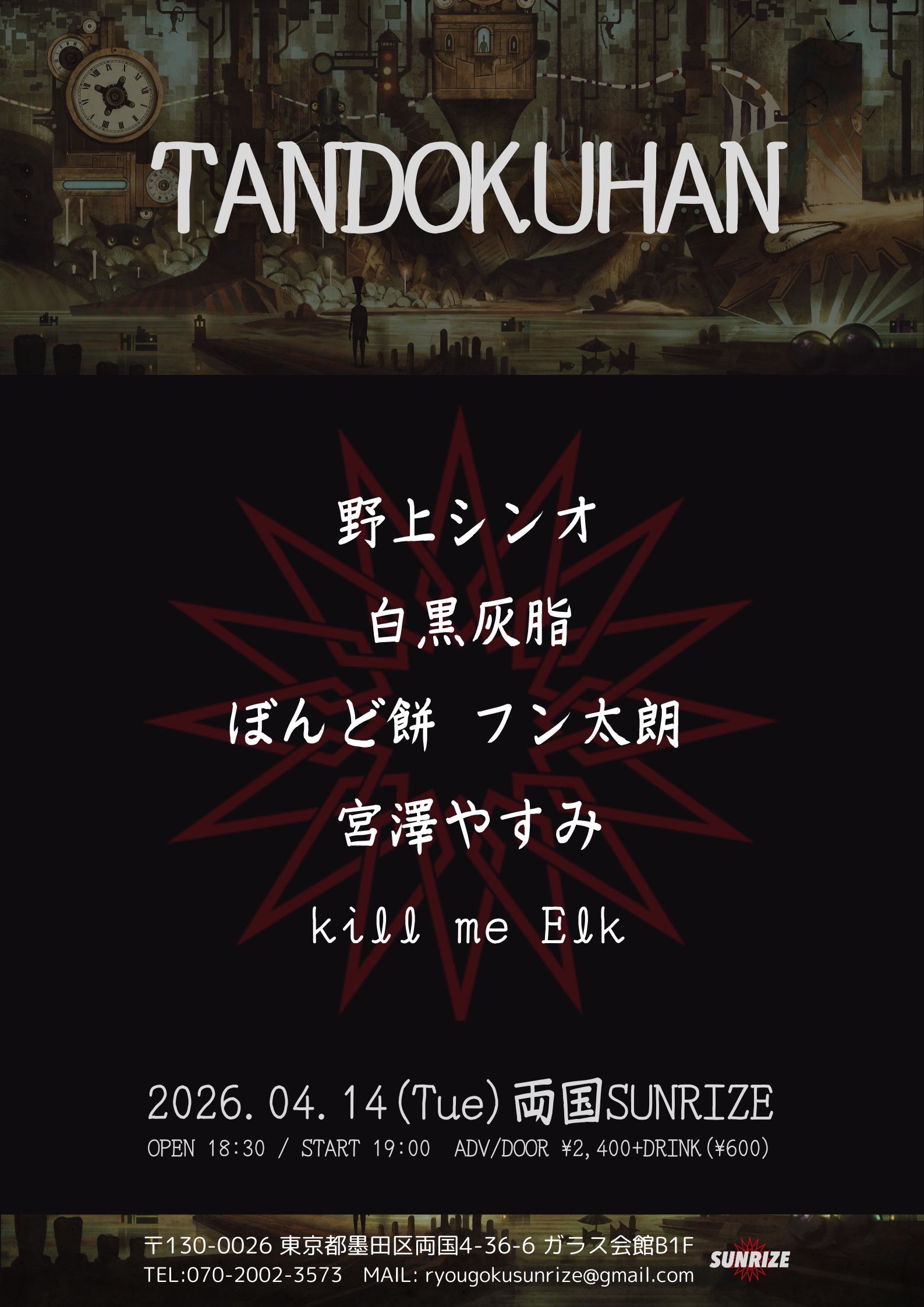2024年1月27日(土) 18:00開場 18;30開演 (2ステージ通し) 入谷 レボン快哉湯 一般 2000円 学生1500円 ご連絡は レボン快哉湯 または SNSのDMなど遠慮なく。 | |